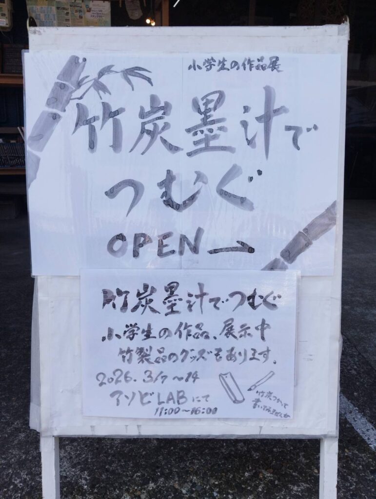 「竹炭墨汁でつむぐ」企画が3/7~15(日)11:00-16:00まで